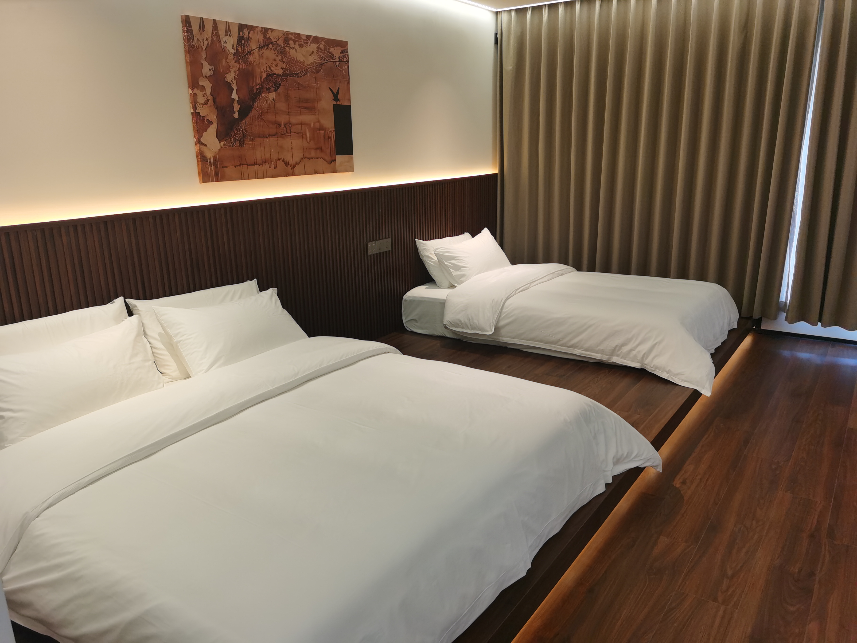 客房内的布局尽显人性化与舒适感,宽敞空间内,柔软的床垫搭配高品质的床品~细腻的触感如同云朵般轻柔,让人仿佛置身于温柔乡